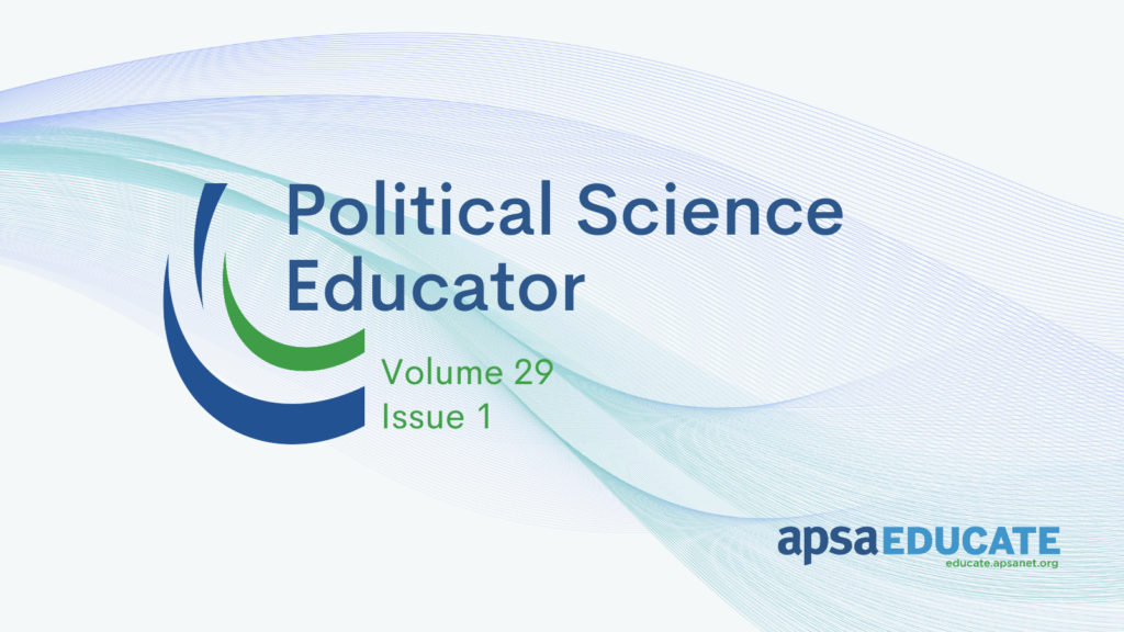 Political Science Educator: volume 29, issue 1 Dear Colleagues, I hope this message finds everyone well as spring terms wrap up in the coming weeks. The Political Science Education Executive Committee has been busy with continuing and new initiatives this spring. As discussed at the Teaching and Learning Conference (TLC) and in the February newsletter,…