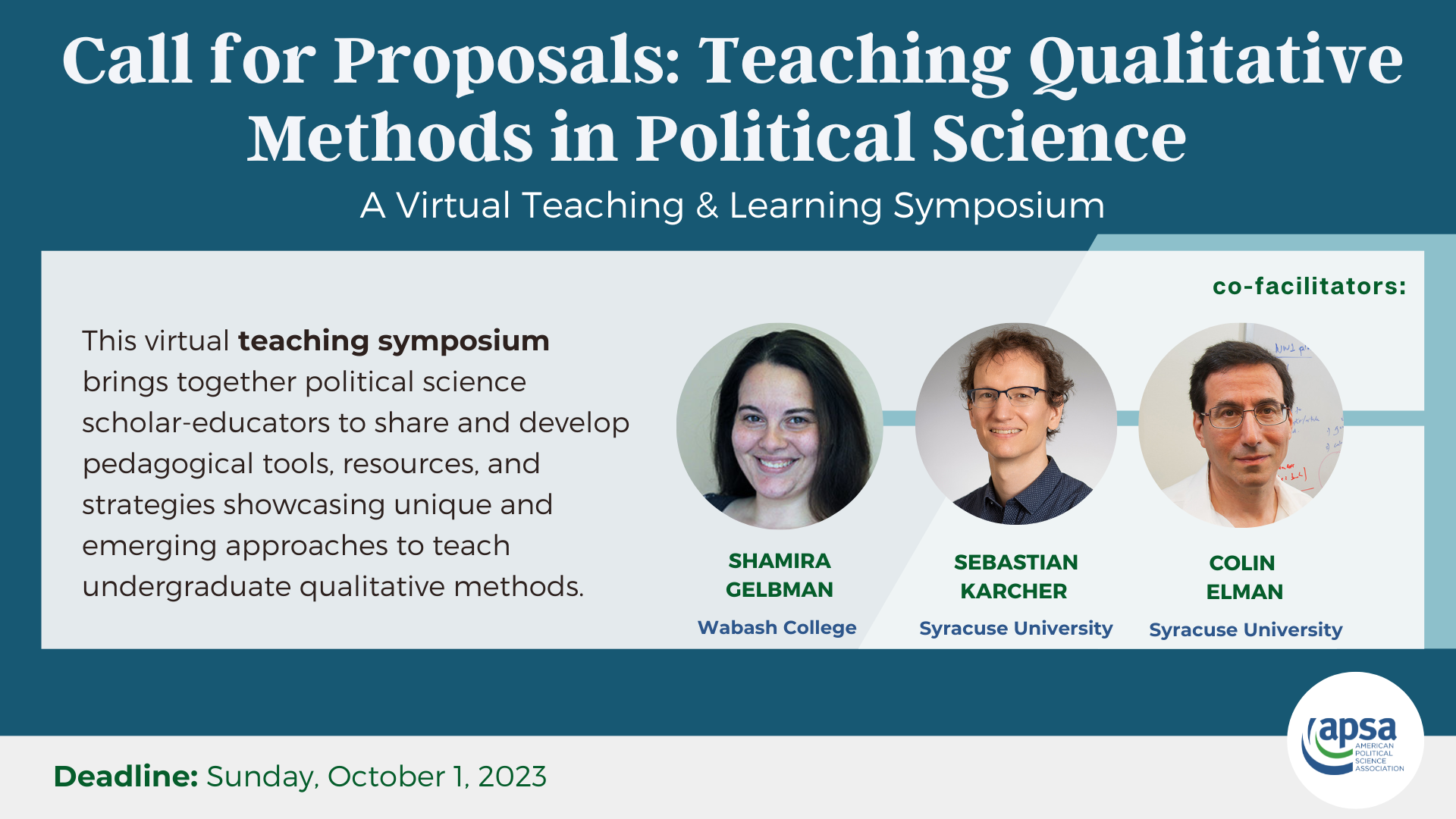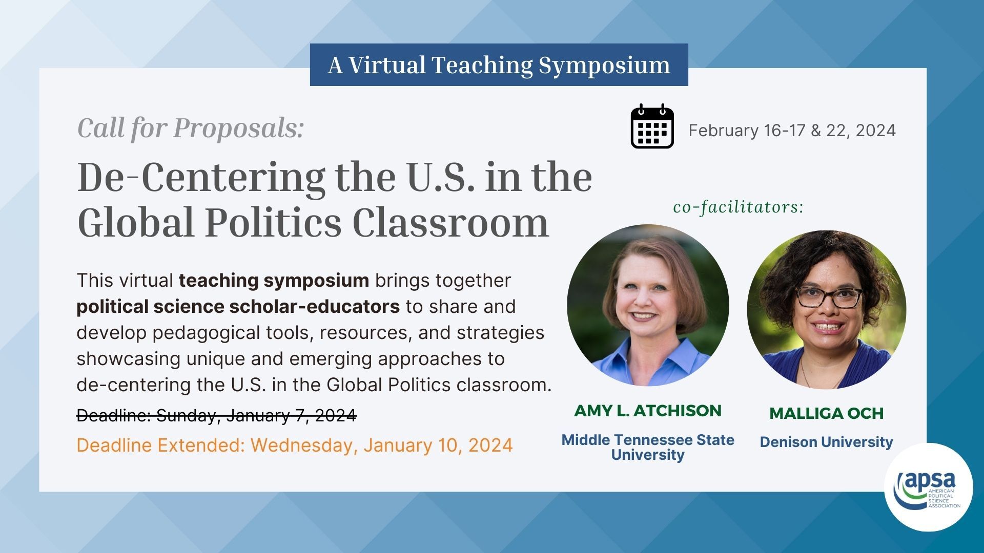 Call for proposals | APSA Virtual Teaching & Learning Symposium | Application Deadline: June 8, 2025