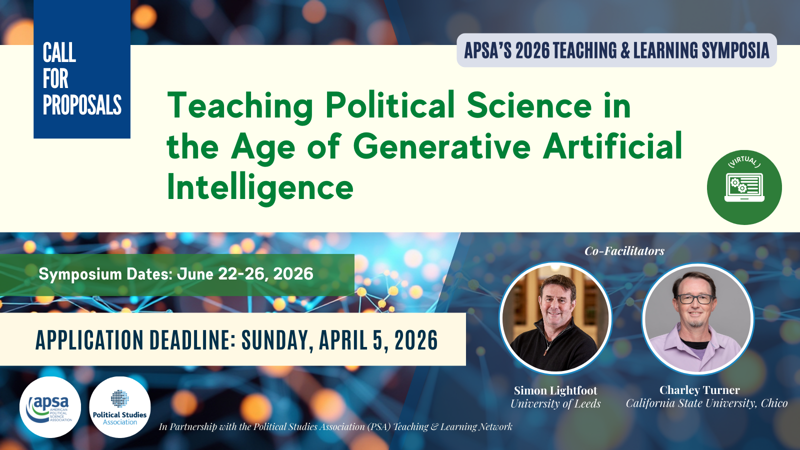 Call for Proposals | Teaching Political Science in an Age of Generative Artificial Intelligence (GAI) | Start Your Application Here | Virtual, June 22-26, 2026