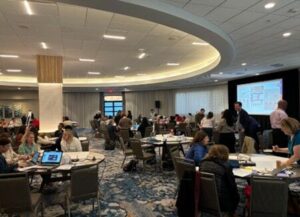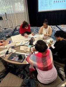 The session culminated in a gallery walk (Figure 5 above) to celebrate the creative and persuasive visualizations which sparked meaningful conversations. Educators took the last 10 minutes to view each group’s poster, leaving sticky notes with comments, questions, and suggestions. This cross-group engagement helped educators understand how civic education data might be used across educational contexts, while also identifying ways to strengthen their own work. The exercise generated positive feedback in the moments and months following the session. A participant observed, “This is interesting because if you were trying to sell this to a district, or sell it to teachers, or trying to get people to do it, that was really good info, that was really good research.” Another noted, “This activity helped make the connection between what the aim of the program was and what the actual results are.”